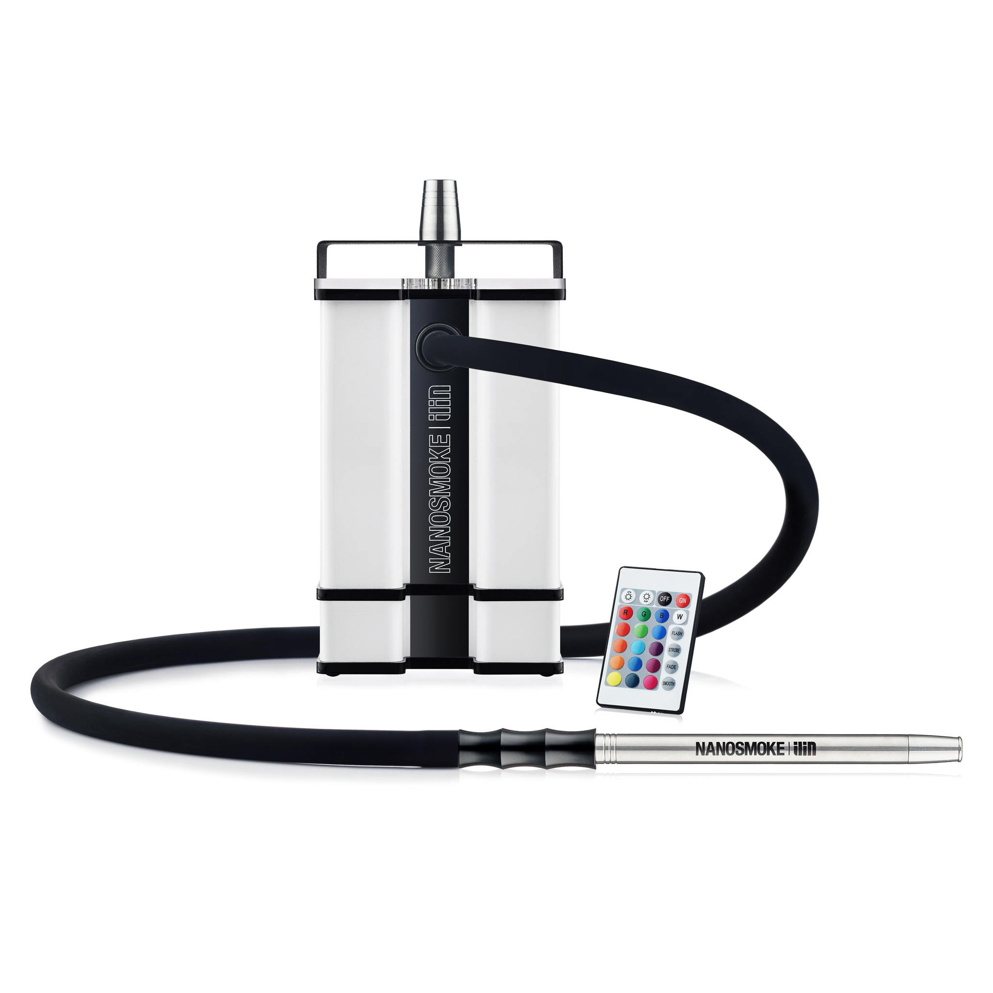 Флагман компании nanosmoke кальян Ilin led имеет обновленный корпус с выемкой для удобной переноски, шланг с магниным коннектером и мундштук из нержавеющей стали. Блюдце покрыто специальной краской и выдерживает высокие температуры до 1000 градусов. Кальян nanosmoke Ilin led имеет подсветку с пультом благодаря которой можно выбирать цвет дыма. Размеры 13 X 13 X 26 см, вес 1,74 кг, длина шланга 130 см, вместимость 1,1 л.