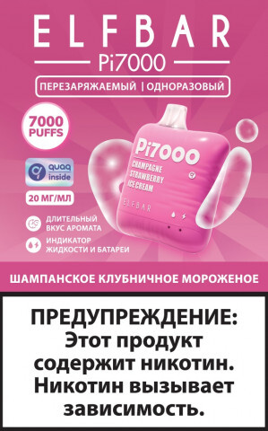 Характеристики одноразовый pod elf bar pi7000 - шампанское клубничное мороженое (7000 затяжек)
