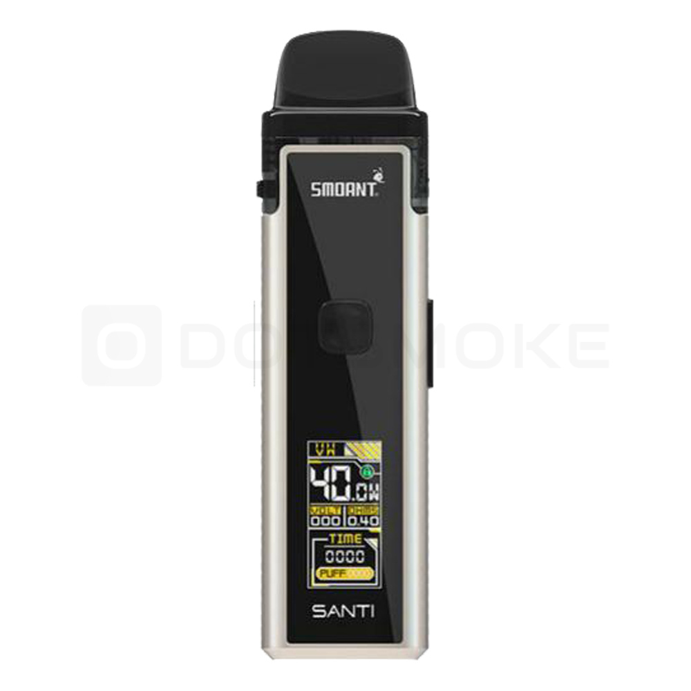 Встроенный аккумулятор емкостью 1100 мАч обеспечивает длительную работу при мощности от 1 до 40 Вт. Испаритель вставляется в картридж SANTI объемом 3,5 мл. Максимальную вкусопередачу жидкости обеспечивает сетчатый фильтр из проволочного материала ERNiCrMo.